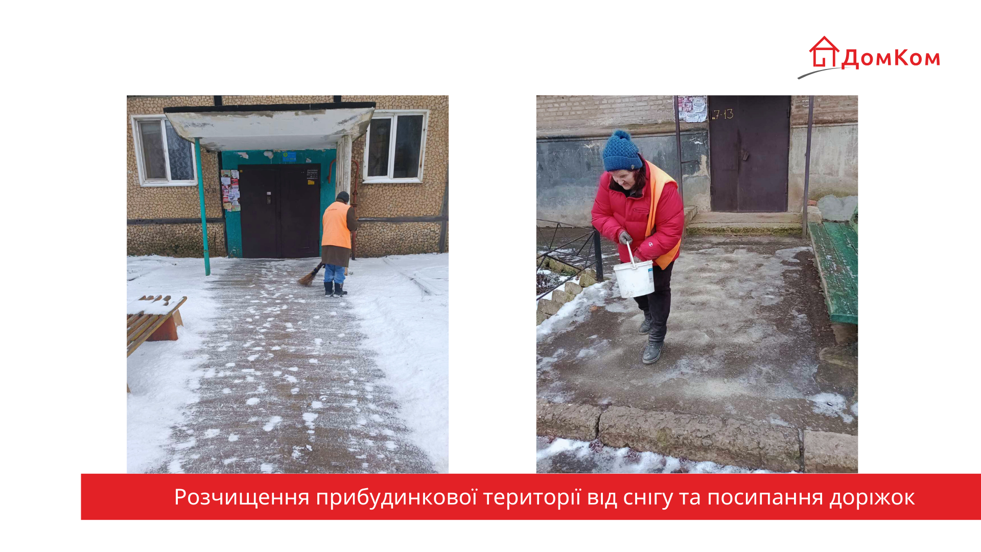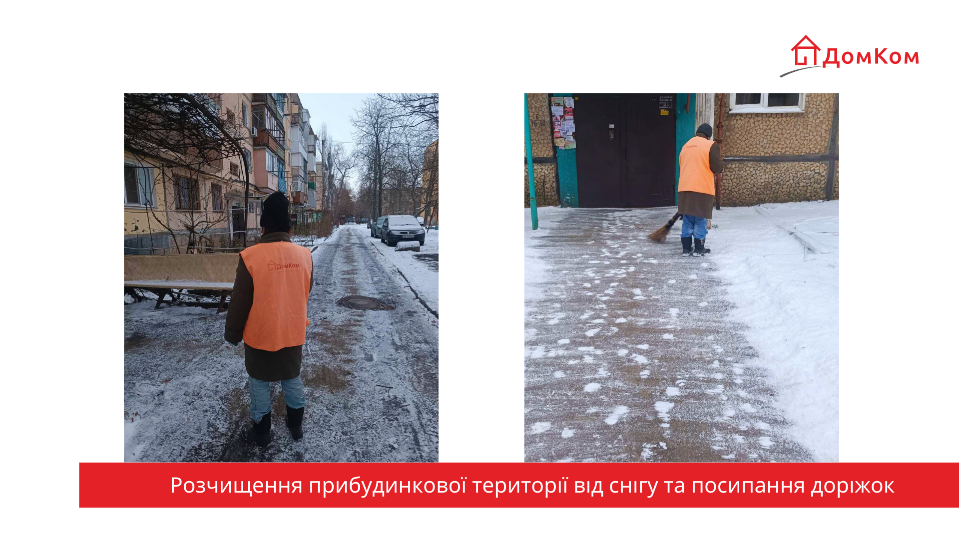 Керуюча компанія «ДомКом Кривий Ріг» у щоденному режимі забезпечує належний санітарний стан прибудинкових територій та дбає про безпеку мешканців у зимовий період.