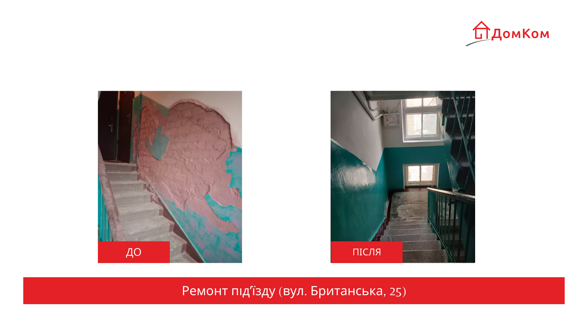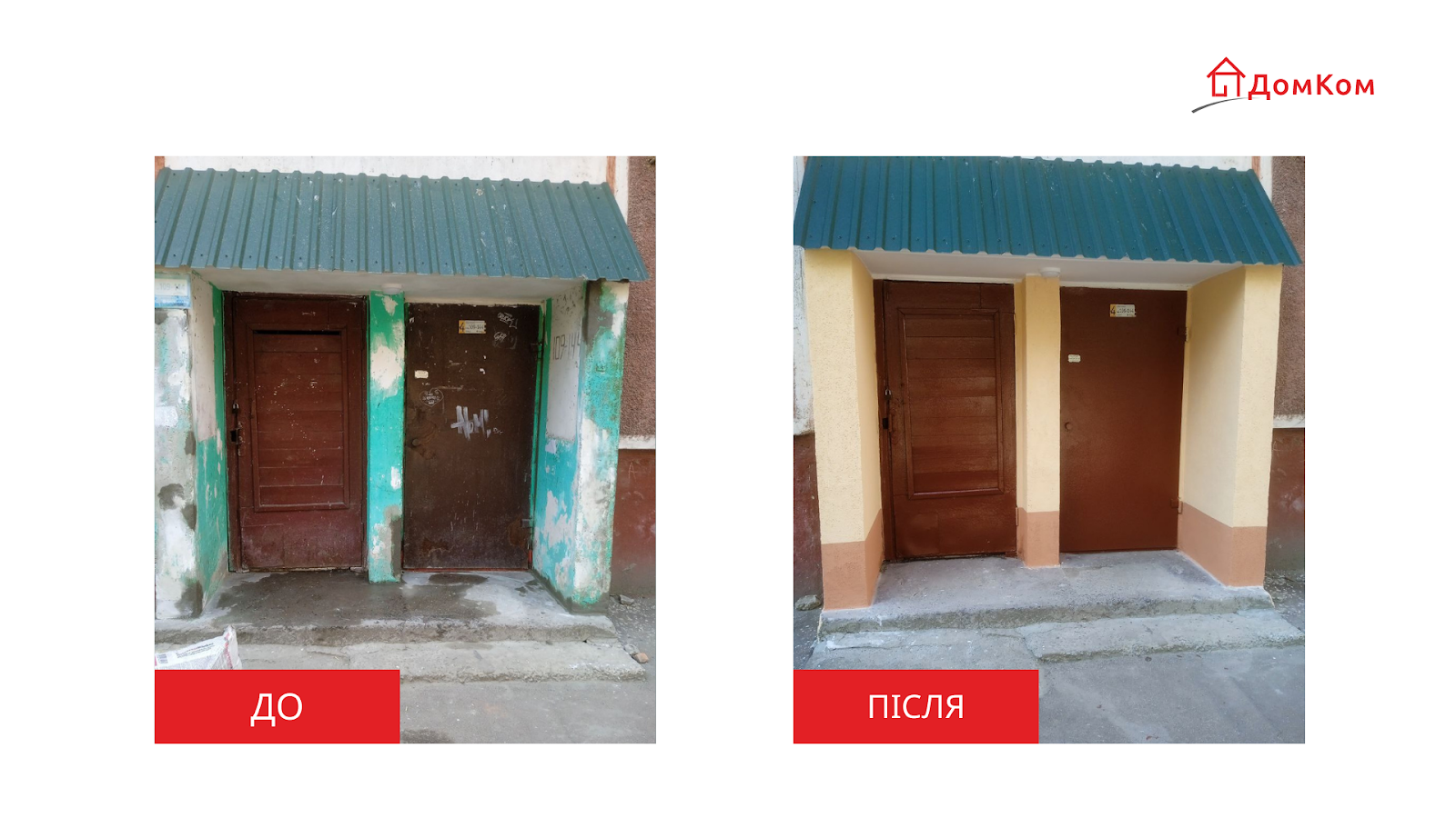 Керуюча компанія «ДомКом» пропонує мешканцям інвестиційні проєкти. Компанія виконує роботи та закуповує матеріали одразу, а мешканці повертають кошти рівними платежами протягом 12 місяців.